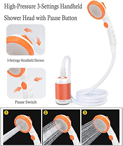 DOCCIA MULTIUSO PORTATILE: basta immergere completamente la pompa nel secchio / vasca con acqua e accendere il motore, otterrai una bella doccia fluida. Adatto per docce interne/esterne, campeggio, viaggi, bagno per bambini, pulizia degli animali domestici, lavaggio auto, innaffiare piante da giardino. Design scientifico e bello, facile da smontare, carico e pulizia.