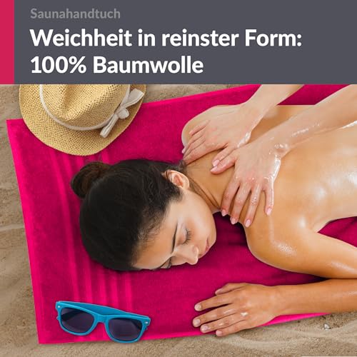 - Con una dimensione di circa 220 x 80 cm, questo asciugamano XL in 100% cotone è adatto anche per persone alte ed è ideale come telo da sauna e telo mare.