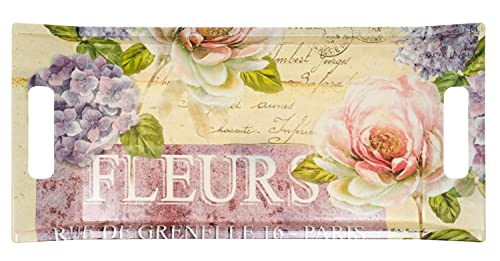 Con questo vassoio colorato è il momento di romanticismo! Rose rosa e fiori viola su beige sul nostro vassoio da cucina rettangolare aggiungono accenti pittoreschi.