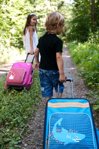 Lassig Valigia per Bambini con Ampio Scomparto Principale e Sacca per Scarpe e Biancheria Separata,Cinghie Elastiche, Tasca con Zip e Manico Regolabile In Due Altezze, Riflettori Sicurezza, Spiccolo Squalo, Shark Ocean