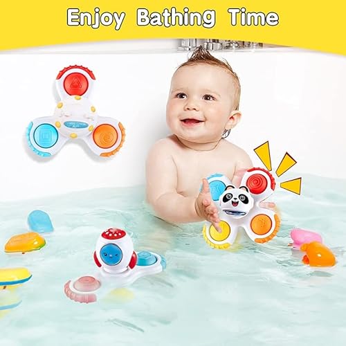 Lassuzie Giochi Bagnetto Neonato, 3 Pezzi Spinner Giochi Bambini, Ventosa Spinner Giocattoli, Giochi Bagnetto 1 2 3 4 Anni, Astronauta Giochi Montessori per Neonati, Giochi Doccia per Vasca Da Bagno