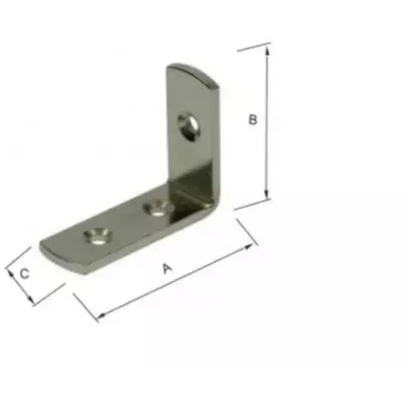 Lastrina angolare in ferro nichelato con 3 fori. Dimensioni A=33 B=25 C=12 mm.