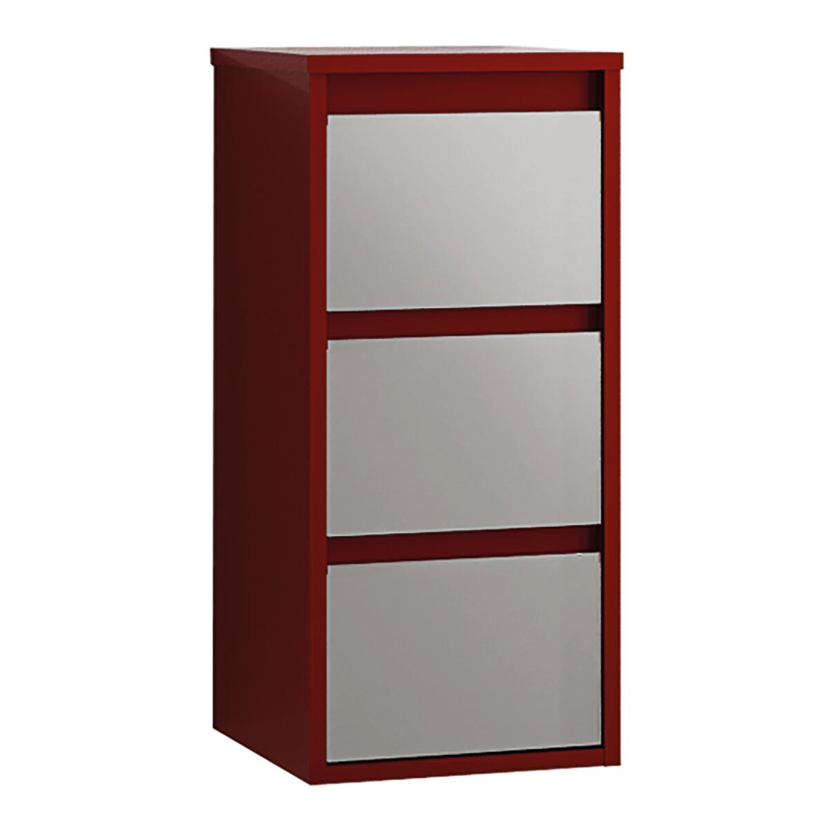 Base laterale Loto laccato lucido rosso con 3 cassetti ammortizzati, frontali in vetro L.35 H.76 P.35. Qualita' finitura;