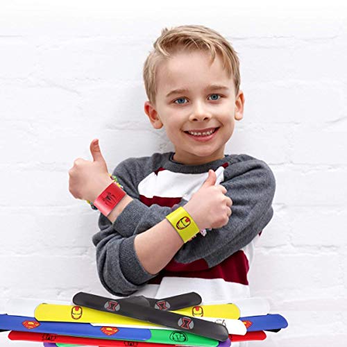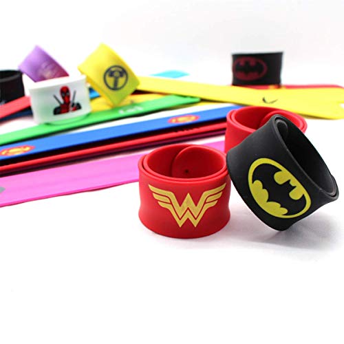 [Superhero Slap Band] Include 24 diversi tipi di bande di schiaffi di supereroi: Superman, Spiderman, Flash, Wonder Woman, Batman, Captain America, ecc., Può andare a scuola come supereroe diverso tutti i giorni della settimana!