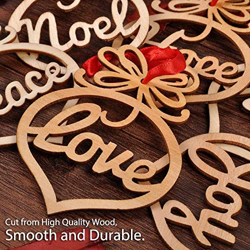 [Alta qualità] Realizzato in legno di alta qualità, superficie liscia, dura e resistente, senza sbavature, non facile da deformare e rompere, viene fornito con nastri rossi da 36 pezzi da appendere