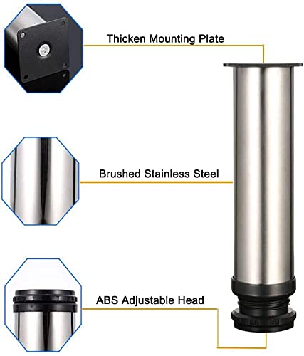 LATERN 6 Pezzi Gambe Regolabili per Mobili, 18CM Acciaio Inossidabile Piedini per Mobili per Cucina Armadio Divani Letto Armadio Piano di Lavoro Colazione Bar Scrivania Tavolo - 5CM di Diametro