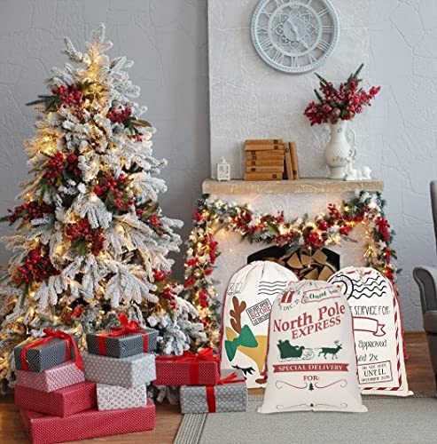 LATERN 3 Pezzi Sacchetto dei Regali di Natale Borsa di Tela con Sacco di Babbo Natale con Cordini Rossi - 3 Stili Borse per La Consegna Espressa di Natale Dimensioni Extra Large 70 x 50cm