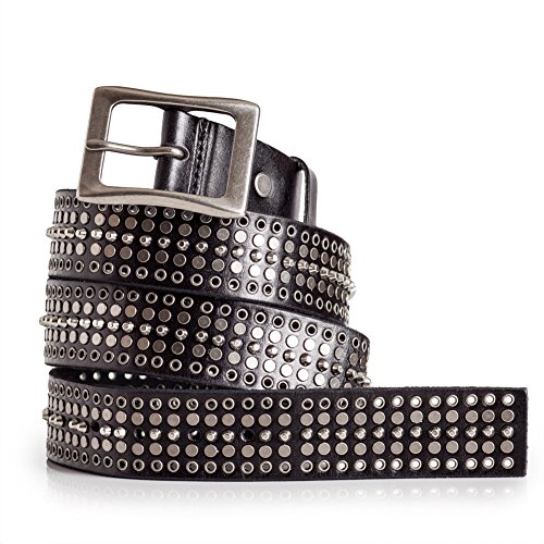 LATICCI Cool Black Leather Belt with Rivets Mens (34)