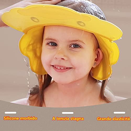 LATRAT Doccia Cap per Bambino, Giallo Doccia Cap per Bambino, Sicurezza Cappello da Bathing, cappello con visore regolabile morbido per neonati e bambini, Proteggi occhi, bocca, orecchie