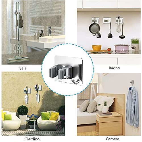 LATRAT Portascopa Autoadesivo da Muro Appendibile 4 Pezzi in Acciaio Inossidabile Senza Perforazione per Cucina Bagno Giardino, Supporti per scope da parete
