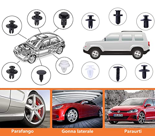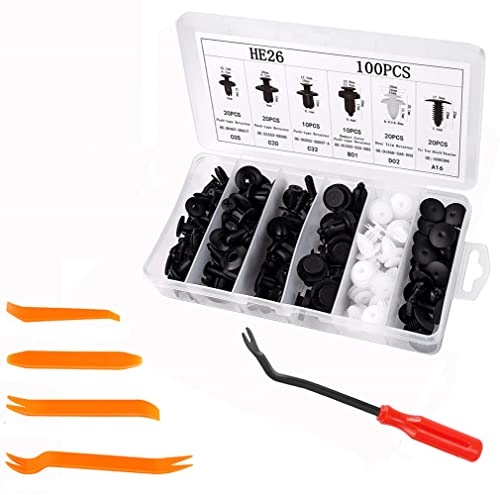 COSA OTTIENI: Il set di clip di rivestimento del fermo del veicolo ti fornirà 100 x clip per carrozzeria, 1 x dispositivo di rimozione del dispositivo di fissaggio, 4 x strumento di rimozione del pannello.