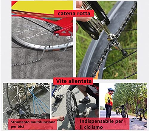 Materiali di alta qualità: Il kit di riparazione multiutensile per bicicletta è nuovo al 100%.Questa è la scelta perfetta se hai bisogno del kit di riparazione biciclette! Gli utensili multi-servizio sono di alta qualità, resistenti e perfettamente funzionanti, realizzati in acciaio al carbonio di alta qualità e materiale ABS per una maggiore durata.
