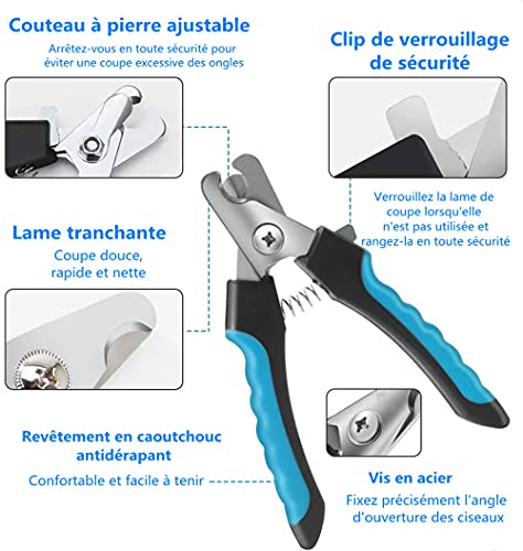 【Sicuro da usare a casa】le pinze per unghie di sicurezza per cani hanno il distanziatore di sicurezza per evitare che gli artigli vengano tagliati troppo corti. Nel frattempo, la funzione delle lame di bloccaggio consente di chiudere bene i tagliaunghie in modo da poterlo proteggere.