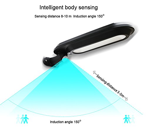 1, lampada solare intelligente del sensore del corpo, distanza di rilevamento può raggiungere 8-10 metri, angolo di rilevamento 150 °