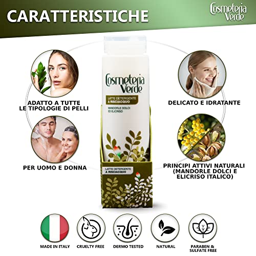 ✅ Latte detergente a risciacquo alle mandorle dolci di Avola ed Elicriso Italico, ad azione detergente ultra-delicata, ideale per la pulizia di pelli disidratate, irritate o arrossate.