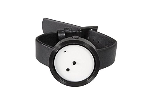 Un orologio che per alcuni versi richiama l'immagine del sistema solare. I punti di grandezza variabile rappresentano in ordine crescente i minuti e le ore, mentre il puntino al centro rimane fisso. Design: Denis Guidone