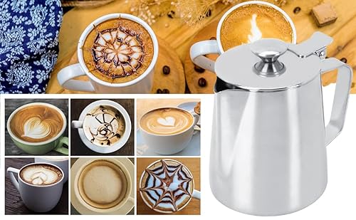 Lattiera 350ml in acciaio inox brocca per la schiuma di latte tazza con coperchio per latte artigianale caffè latte cappuccino