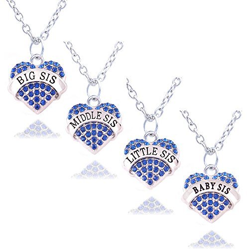 Lauhonmin - Set di 4 collane con ciondolo a forma di cuore con cristalli blu, per donne e ragazze