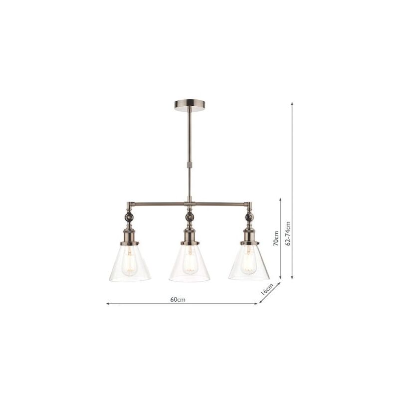 Materiale della lampada: VetroColore lampada: nichel satinatoBase della lampada: E27Numero di sorgenti luminose: 3Livello di protezione (IP): 20Potenza sorgente luminosa: 40Larghezza: 60Altezza: 57Profondità: 16