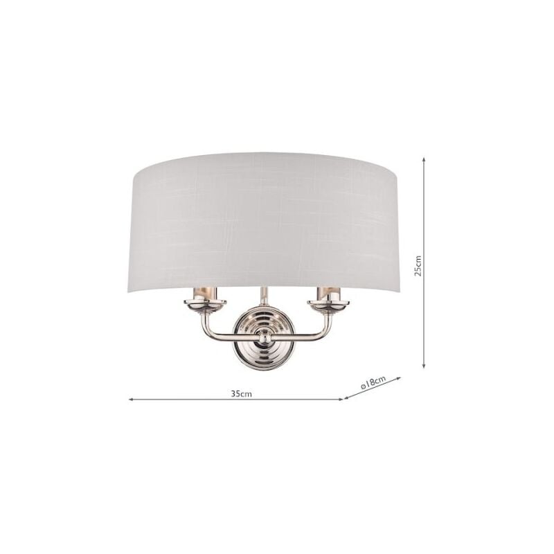Materiale della lampada: ArgentoColore della lampada: Nichel lucidoBase della lampada: E14Numero di sorgenti luminose: 2Livello di protezione (IP): 20Potenza sorgente luminosa: 40Larghezza: 35Altezza: 25Profondità: 18