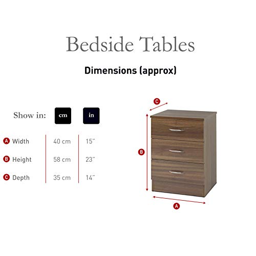 Laura James, comodino con tre cassetti, nero Walnut/Espresso