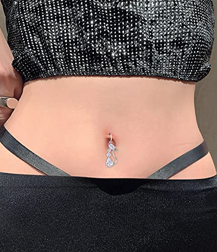 LAURITAMI Anelli di Pancia Finti Morsetto Clip d'Argento su Helix Orecchini con Cartilagine Orecchio Cerchio a Molla Non Forato 10mm con Ciondolo Pendente