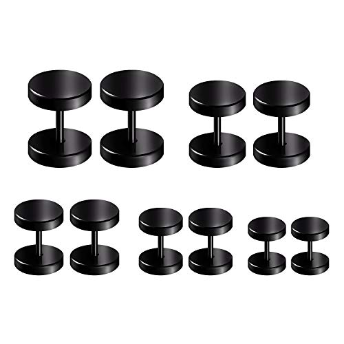 LAURITAMI 5 Pairs 16G Orecchini in Acciaio Inossidabile Barbell Piercing Helix Tragus Perno Barbell per Uomo Donna Nero Argento 4-12mm