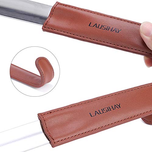 Lausihay Calzascarpe in acciaio inossidabile (42 cm + 17 cm) con cinturino in pelle - Foro per ciondolo ascensore per scarpe con manico lungo in acciaio inossidabile - Facile da usare (42) "