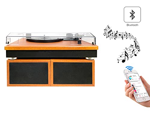 Giradischi moderno con Bluetooth: stereo eccellente e capacità di funzionare come altoparlante Bluetooth. Connetti facilmente il Bluetooth al tuo telefono o dispositivo per ottenere un suono eccellente e ascoltare la tua musica preferita.