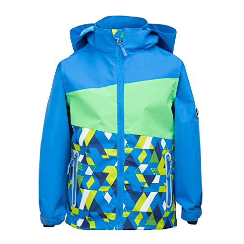 LAUSONS Giacca a Vento Bambini e Ragazzi - Impermeabile con Color Block e Cappuccio - Giubbino Antivento Foderata in Pile, Blu, Taglia 140/9-10 Anni