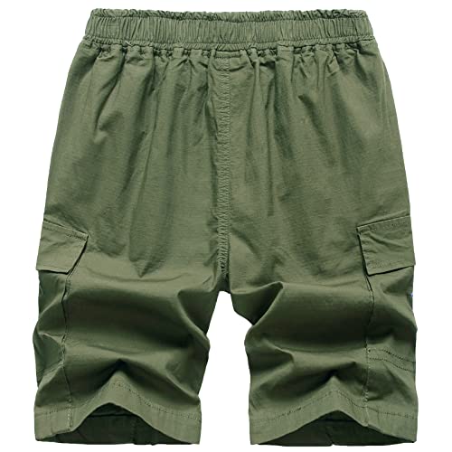 LAUSONS Pantaloncini cargo da ragazzo per bambini, pantaloni corti, bermuda estivi, verde militare, 122/128 cm