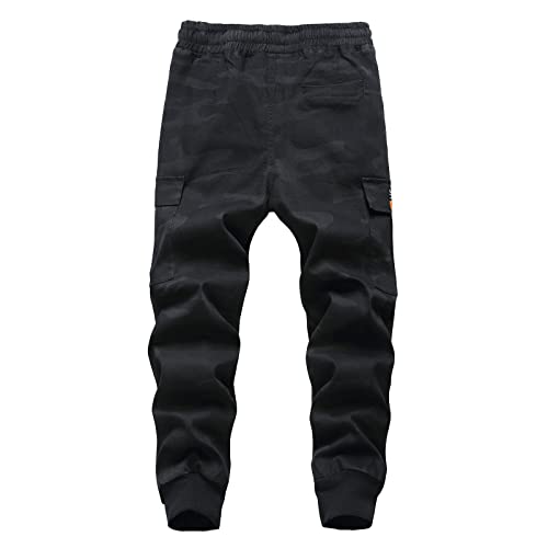 LAUSONS Pantaloni cargo per bambini Joggers Multi Pocket, Black Camo, 7-8 Anni