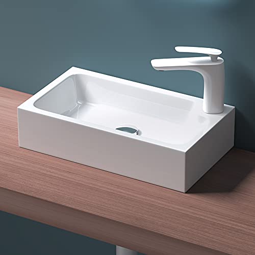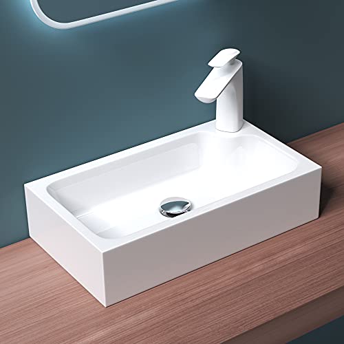 VITA DOMESTICA VERDE SANA: Il lavabo è realizzato in pietra artificiale, che è rispettoso dell'ambiente e più resistente all'usura e non è facile da screpolarsi. Inoltre, il lavabo è facile da pulire e anti-sbiadimento. Misure: Larghezza: 46cm, Profondità: 26cm, Altezza: 11cm. Un foro per la rubinetteria| un foro di scarico | Raccordi - DIN