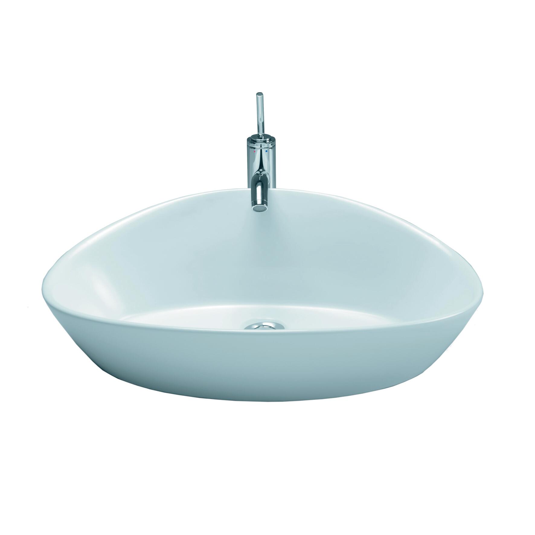 Lavabo da appoggio ovale Elipse in ceramica L 63 x P 43 x H 19 cm bianco. Senza troppopieno. Resistente agli urti