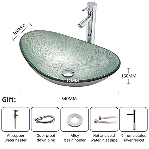 WXDL Lavabo da Appoggio, Vetro Temperato Lavandino da Bagno da Appoggio con Piletta Lavabo Ovale Banda Arte Bagno Lavabo Bagno Lavabo D'appoggio Bagno,Verde,with Tap