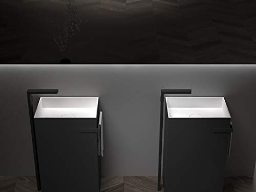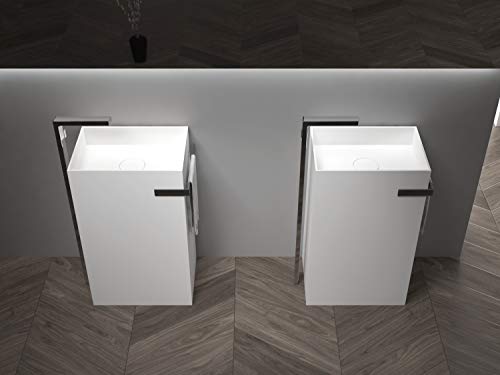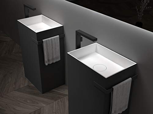 Lavabo a colonna con portasciugamani integrato TWZ312 di pietra solida - 50 x 35 x 85 cm - colore a scelta, Colore:Nero/Bianco (opaco)