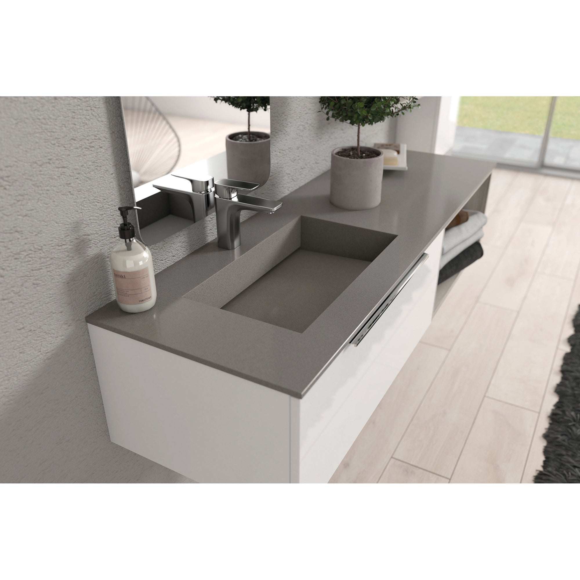 Lavabo in quarzo Gris Expo con vasca a destra L 120 x P 46 x H 13.5 cm
