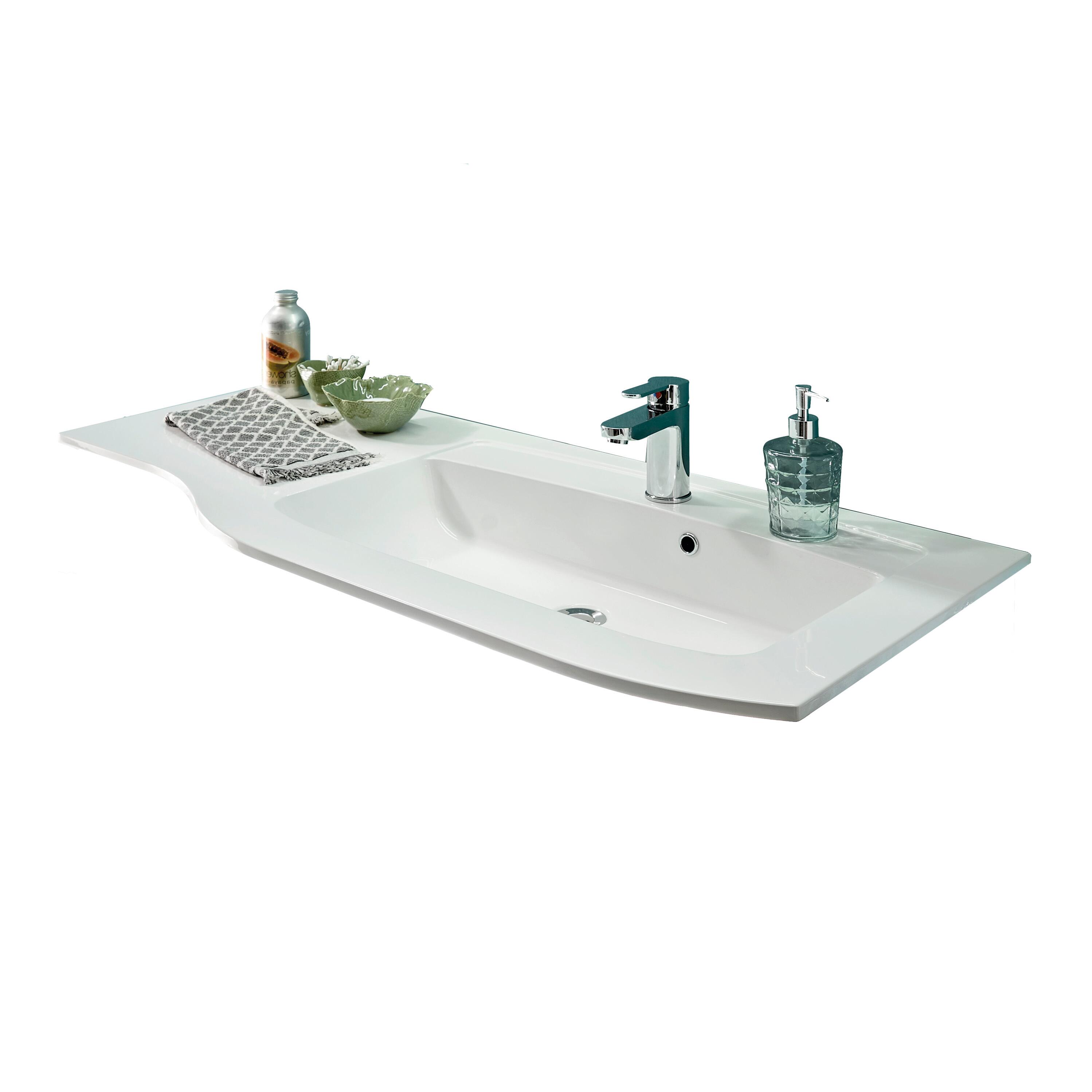 Lavabo in mineralmarmo bianco, con foro rubinetto e troppopieno integrato