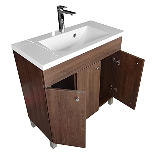 IGA Lavabo con mobile sottolavabo, mobile da bagno rettangolare, con lavabo in ghisa minerale, set di mobili da bagno, rovere scuro, 80 cm