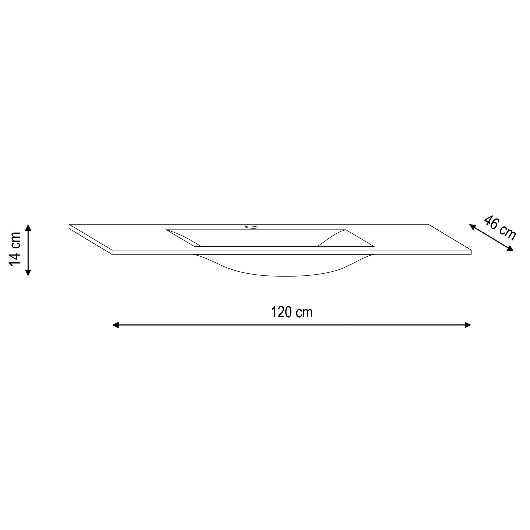 Lavabo rettangolo L 120 x P 46 x H 14 cm in vetro;