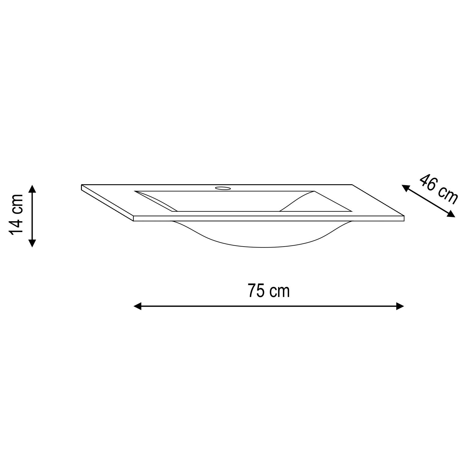 Lavabo rettangolo L 75 x P 46 x H 14 cm in vetro;