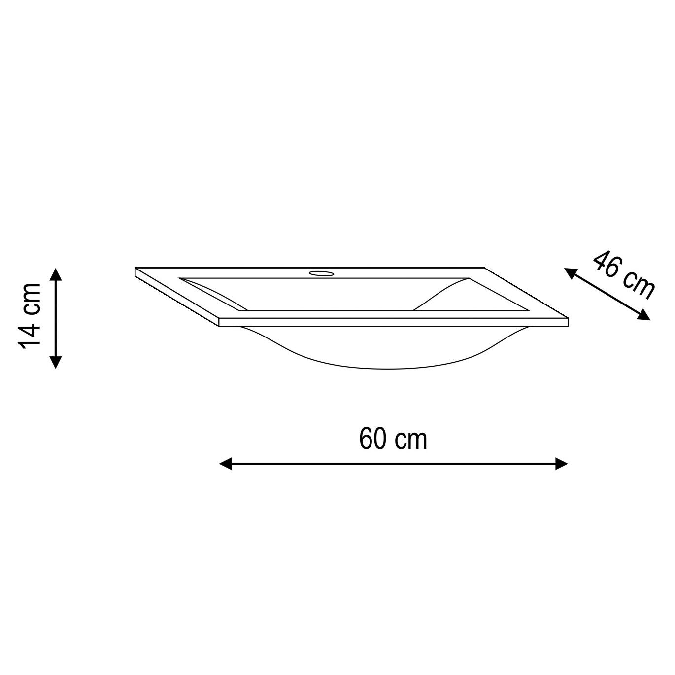 Lavabo rettangolo L 60 x P 46 x H 14 cm in vetro;
