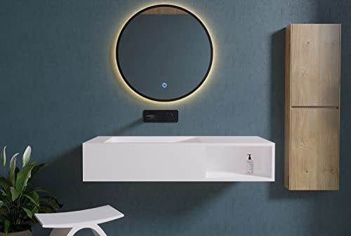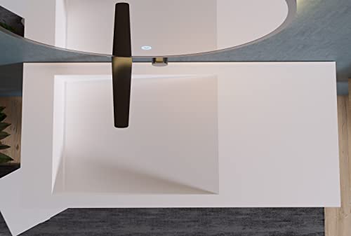Lavabo sospeso o da appoggio PB2088 con vano portaoggetti laterale - Solid Stone - bianco opaco - 100 x 46 x 20 cm