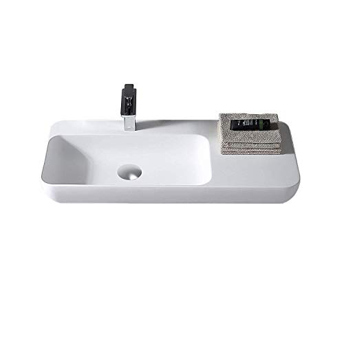 Lavabo sospeso o da appoggio TWG202 con vano portaoggetti laterale - Solid Stone - bianco opaco - 90x40x12cm