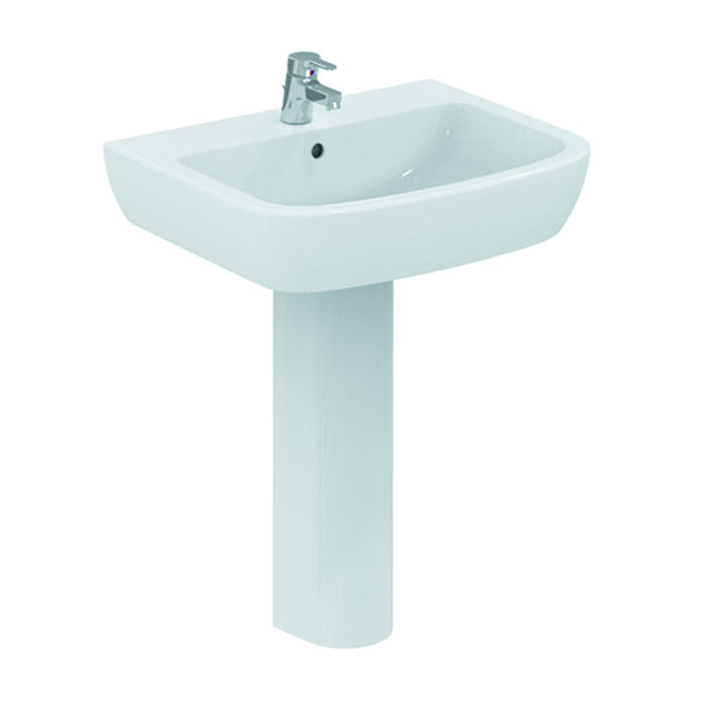 In ceramica, monoforo, dimensioni L 65 x P 52,5 cm. Semicolonnna e rubinetteria venduti separatamente