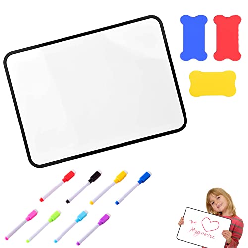 Lavagna Bianca Cancellabile a Secco, Mini Lavagna Bianca con 8 Pennarelli e 3 Gomme, Lavagna Cancellabile a Secco su Entrambi I Lati per Bambini Studenti e Aula