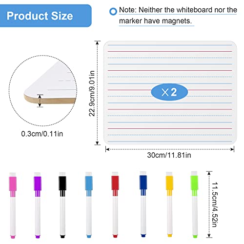 。◕‿◕。【Dimensioni】Due lavagne bianche Dimensioni A4: 29,8 cm X 21 cm / 11,73 pollici X 8,26 pollici, con 8 penne lavabili a secco con gomma