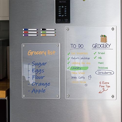 ♘Organizzazione semplice: mantieni la tua vita in ordine con la nostra lavagna magnetica per frigorifero. Pianifica il tuo programma settimanale e mensile, crea una lista della spesa completa e annota facilmente le informazioni importanti. Goditi una vita ordinata e organizzata mentre gestisci il tuo tempo e le tue attività in modo efficiente.