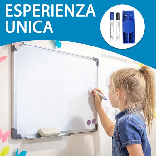 IDEALE PER TUTTI: Lavagna bianca magnetica ideale per tutti gli ambienti quali scuola, ufficio, casa, sale conferenza, meeting e luoghi pubblici. Per adulti e bimbi.