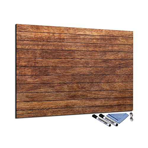 Lavagna magnetica in vetro, 70 x 100 cm, scrivibile, magnetica, bacheca da cucina, ufficio, con accessori, agenda settimanale, lavabile, effetto legno, marrone